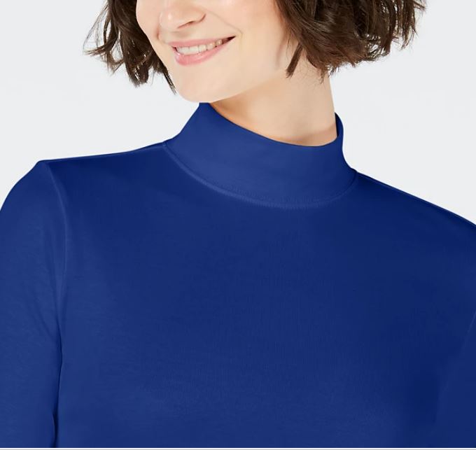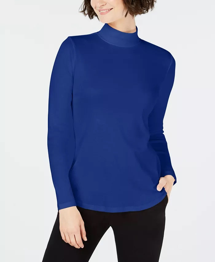 Charter Club Women's Cotton Mock Neck Top Blue Size X-Large