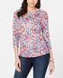 Charter Club Women's Cotton Printed Boat Neck Top Blue Size X-Large