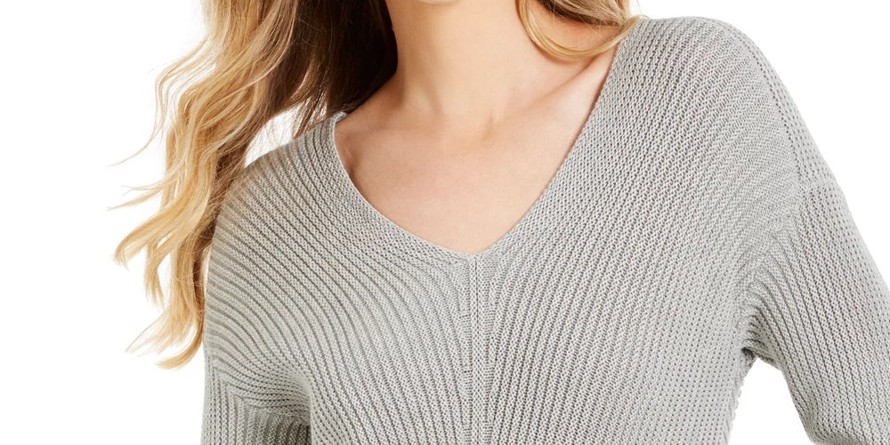 Charter Club Women's Cotton Textured V-Neck Sweater Gray Size XX-Large