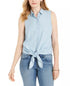Charter Club Women's Cotton Tie-Hem Sleeveless Shirt Blue Size 12