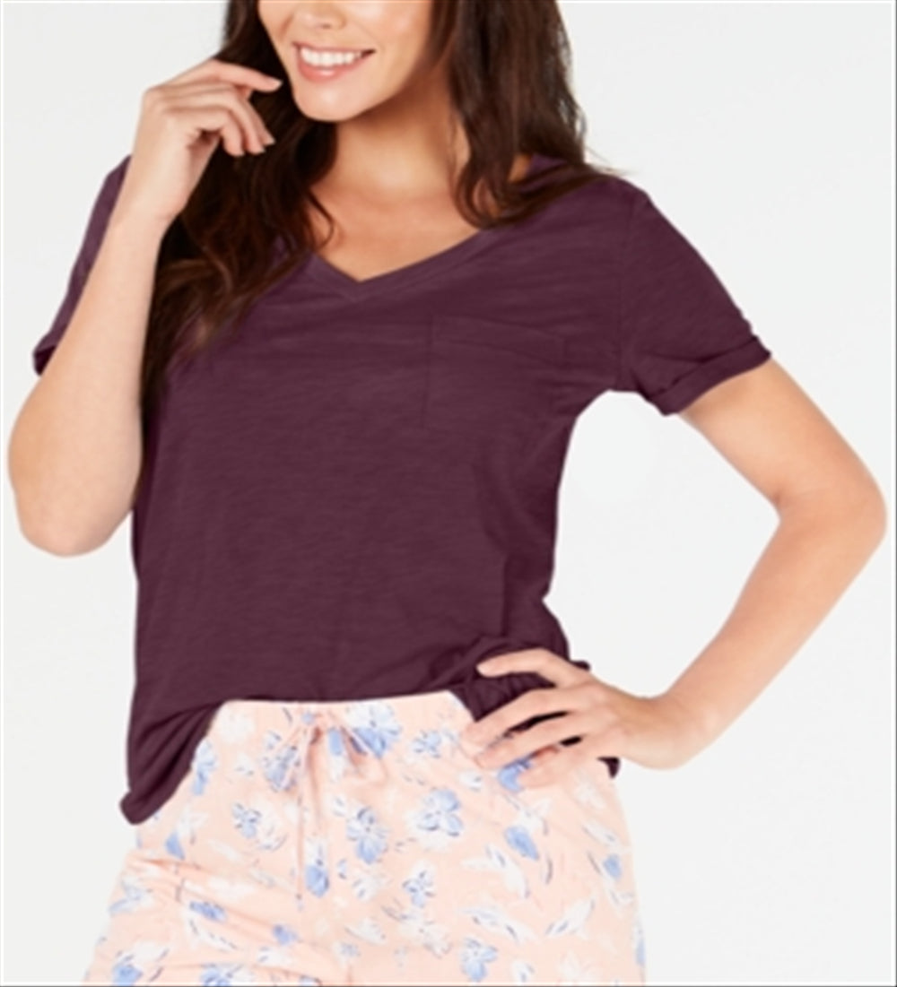 Charter Club Women's Crew Neck Knit Pajama Top Wine Size L