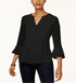 Charter Club Women's Double Ruffle Solid Pintuck Top Black Size Petite S
