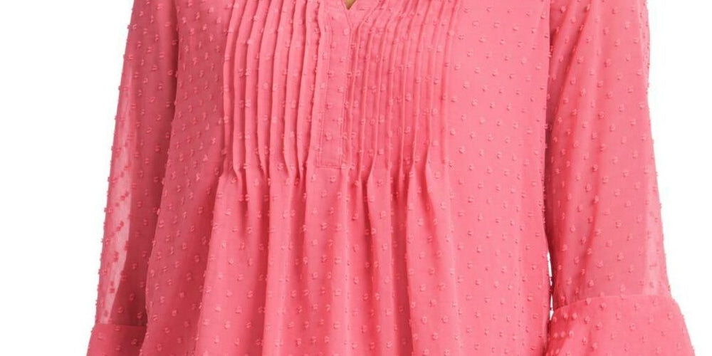 Charter Club Women's Double Ruffle Textured Pintuck Top Pink Size M