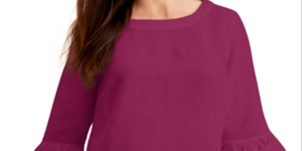 Charter Club Women's Eyelet Bell Sleeve Top Pink Size X-Large