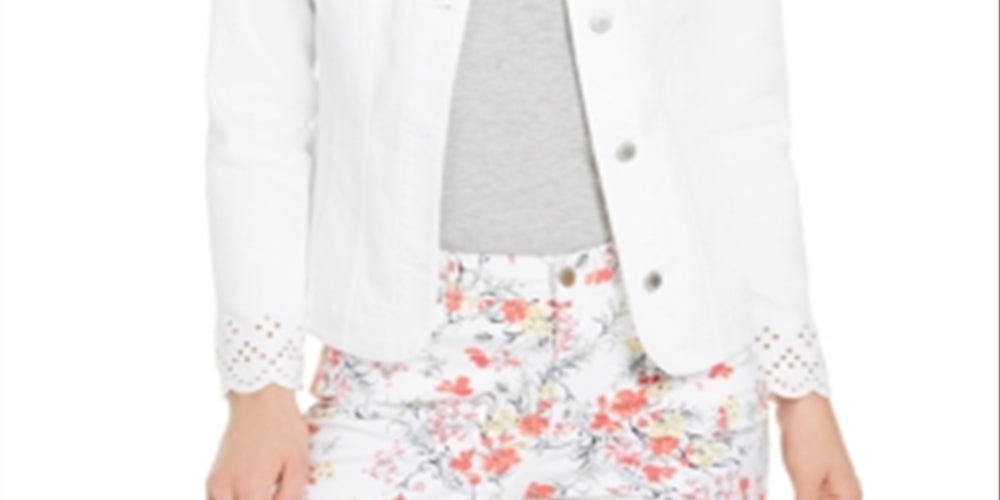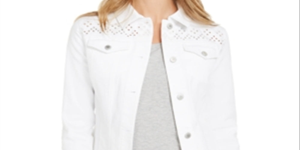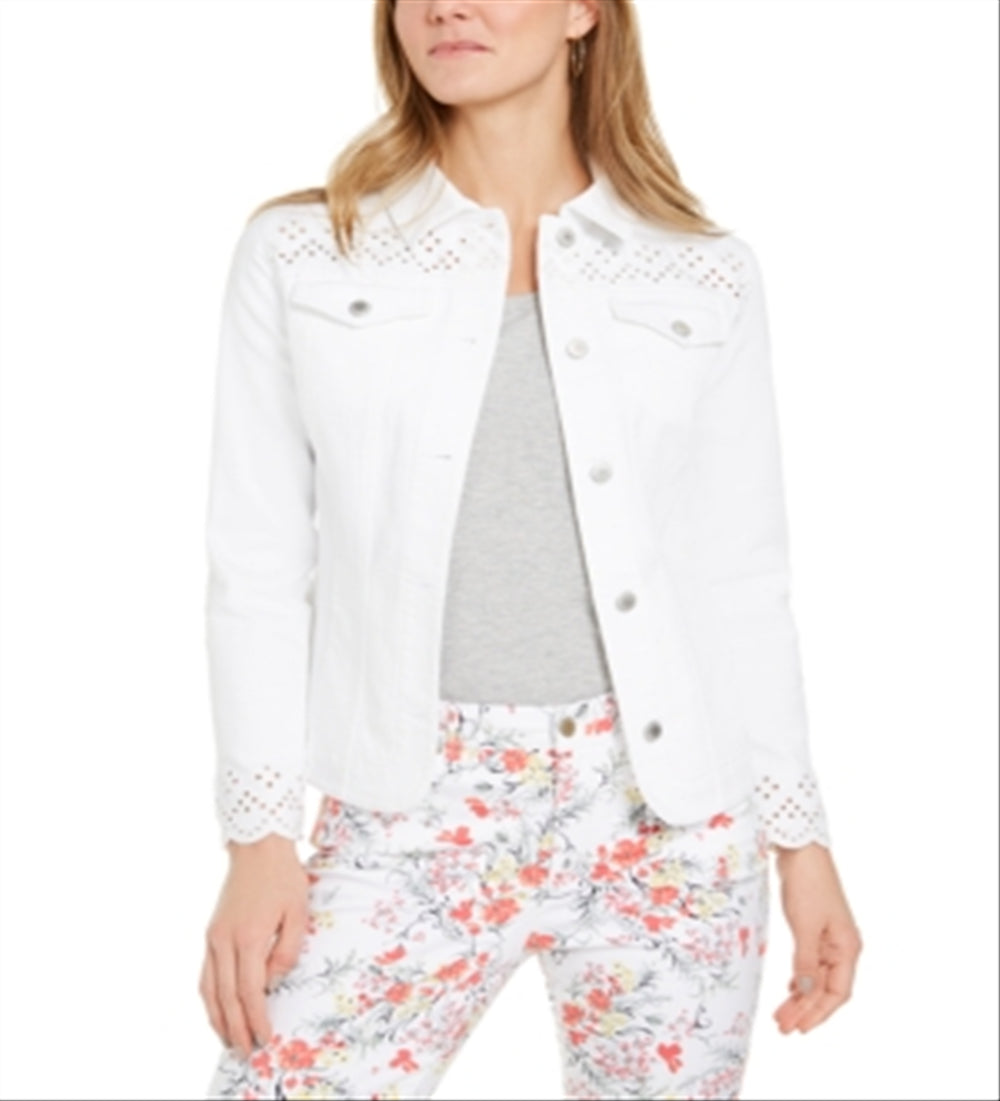 Charter Club Women's Eyelet TrimDenim Jacket White Size X-Small