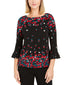 Charter Club Women's Floral Print Bell Sleeve Blouse Black Size Small
