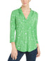 Charter Club Women's Floral Print Pleated V Neck Top Green Size Medium