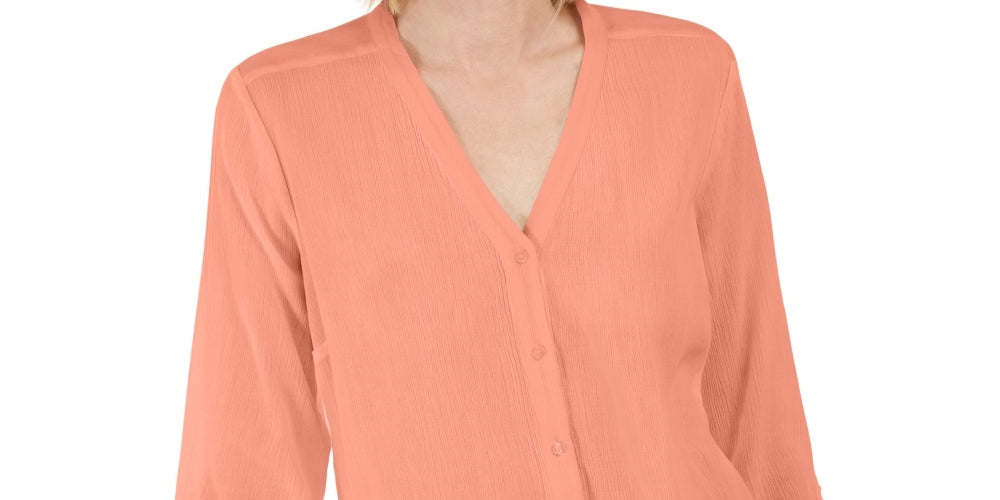 Due to generous sizing; we suggest sizing down for the perfect fit|V-neck; button closure at front|3/4-sleeves with ties at cuffs|Cotton/viscose