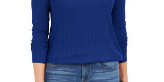 Charter Club Women's Heathered Ribbed Turtleneck Top Blue Size Large