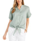 Charter Club Women's Linen Tie Front Button Up Shirt Green Size X-Large