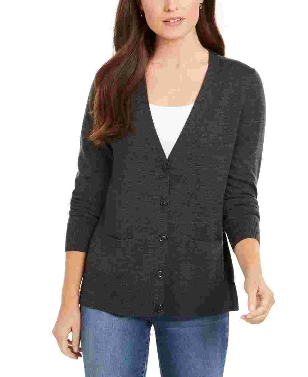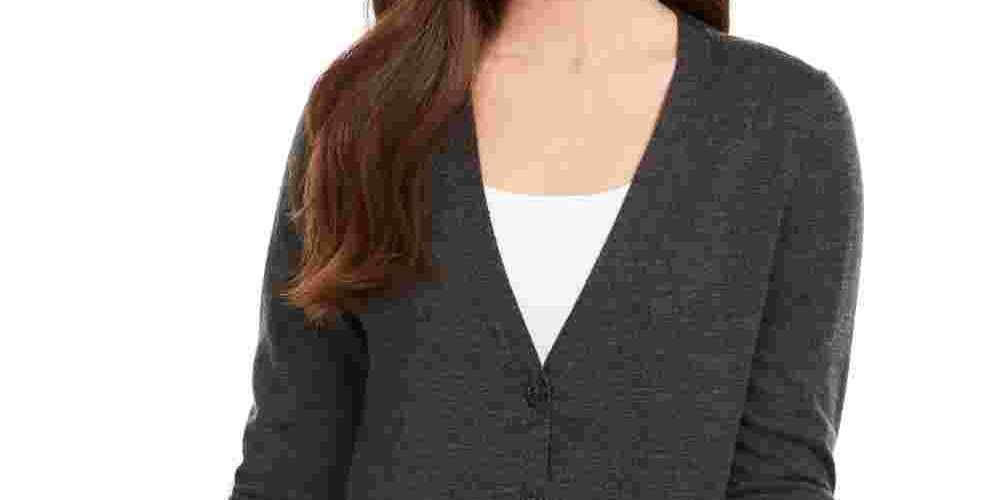 Charter Club Women's Merino Wool V Neck Cardigan Gray Size X-Large