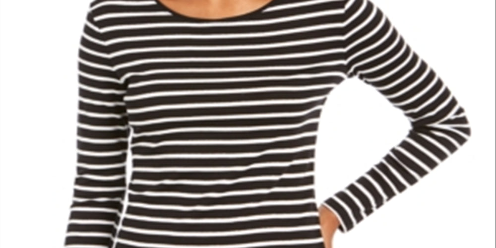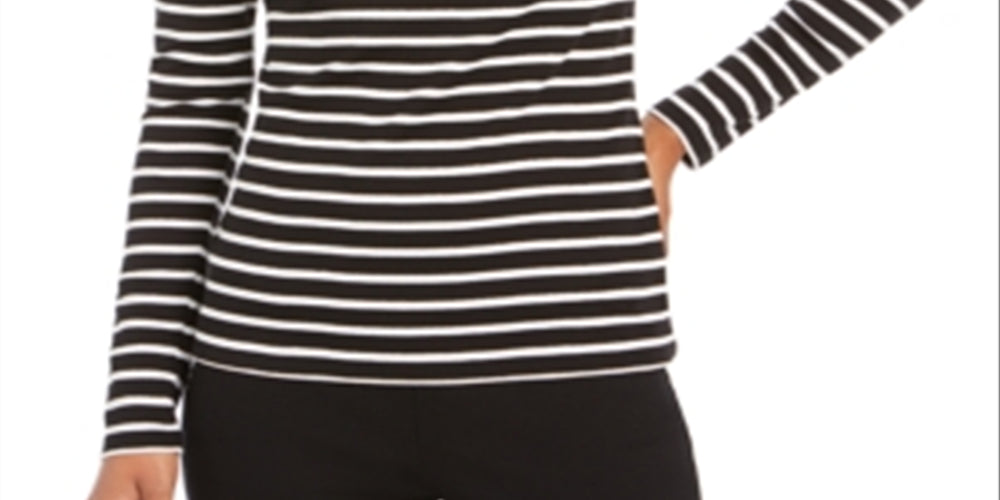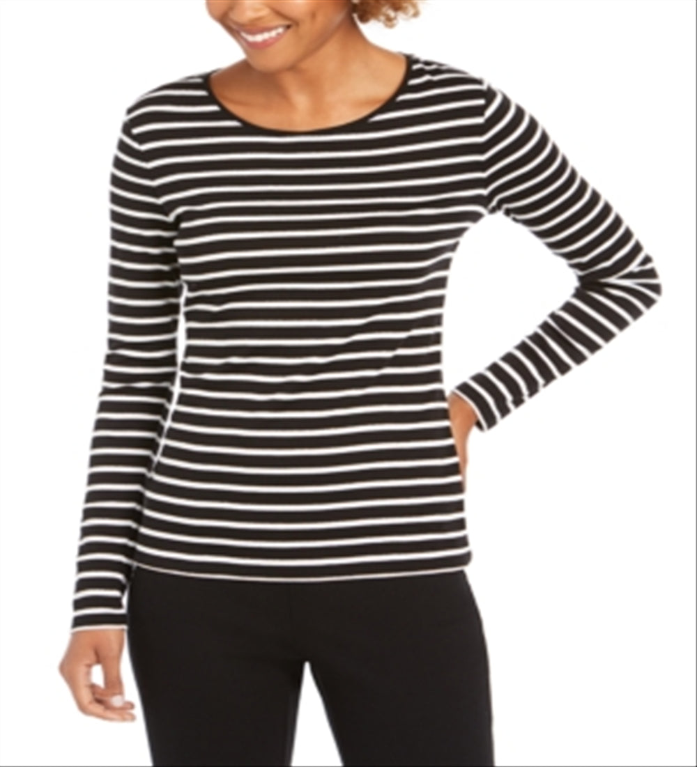 Charter Club Women's Metallic Stripe Top Black Size XX-Large