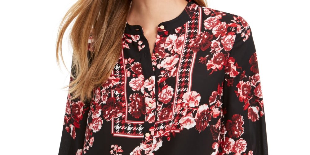 Charter Club Women's Mixed Print Henley Top Red Size Petite Small