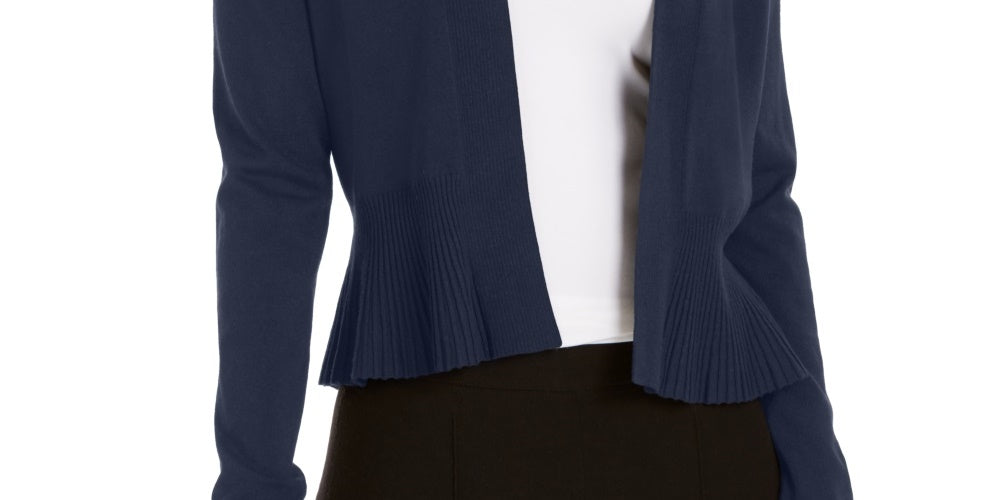 Charter Club Women's Open-Front Peplum Cardigan Blue Size Large