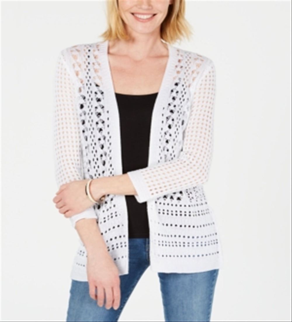 Charter Club Women's Open Stitch Cardigan Completer Sweater White Size Small
