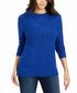 Charter Club Women's Patchwork-Stitch Asymmetrical-Collar Sweater Blue Size Small