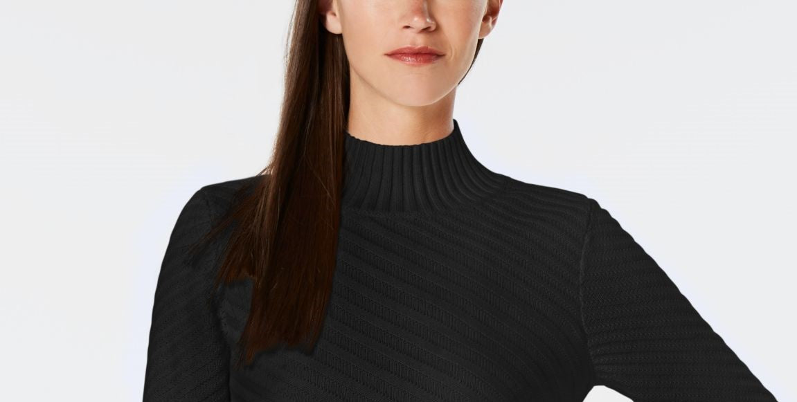 Charter Club Women's Patterned Mock Turtleneck Sweater Black Size Petite Medium