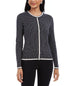 Charter Club Women's Petite Metallic-Trim Grid-Patterned Cardigan Sweater Black Size Petite S
