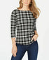 Charter Club Women's Petite Pima Cotton Button-Shoulder Print Top Black Size Small