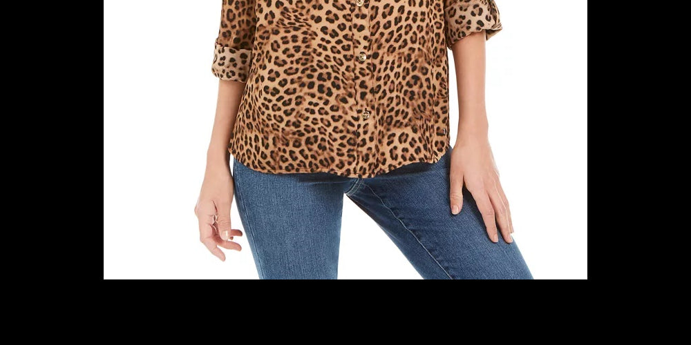 Designed to fit and flatter 5'4 and under frame|Point collar; button front closure|Roll-tab sleeves|Polyester|Machine washable