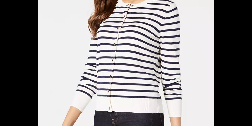 Charter Club Women's Petite Striped Toggle-Closure Cardigan White Size Petite L