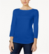 Charter Club Women's Pima Cotton Boat Neck Button Shoulder Top Blue Size 2XL