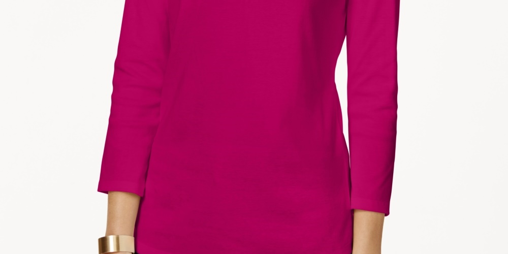 Charter Club Women's Pima Cotton Boat Neck Button Shoulder Top Pink Size Large