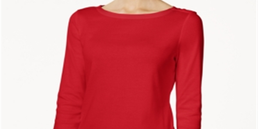 Charter Club Women's Pima Cotton Boat-Neck Button-Shoulder Top Risky Red Red Size 2XL