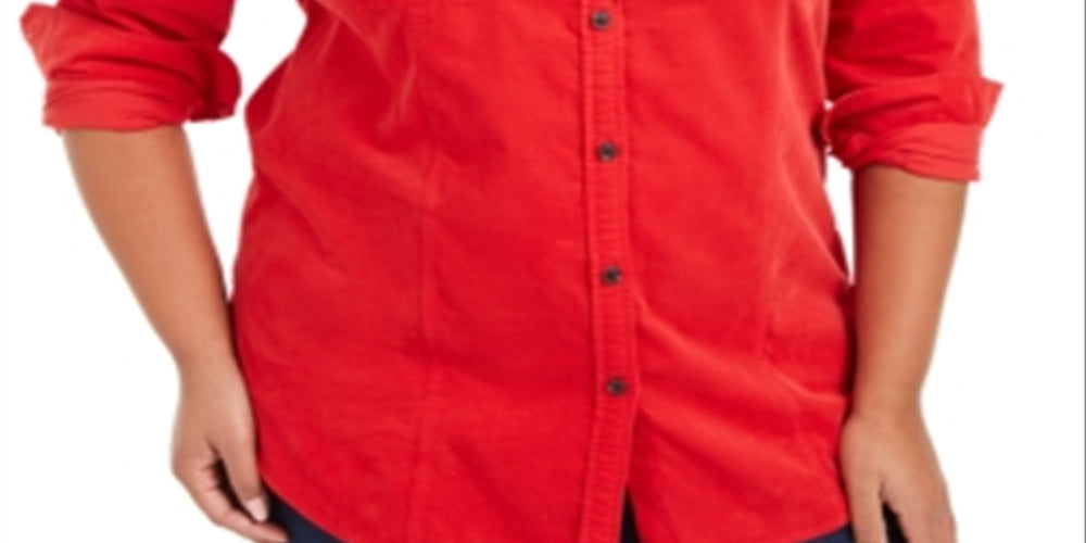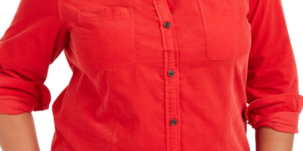 Charter Club Women's Plus Cotton Corduroy Shirt Ravishing Red Size 0X