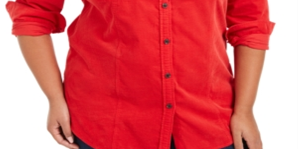 Charter Club Women's Plus Cotton Corduroy Shirt Red Size 1X