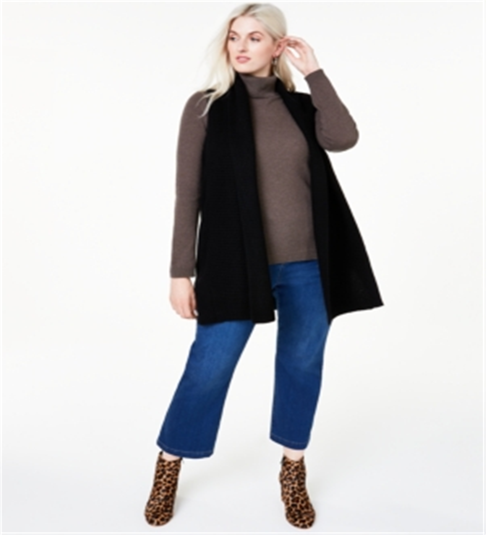 Charter Club lends a layer that finishes your looks through the week and beyond in this plus size sleeveless sweater| a soft cashmere style finished with a versatile open front.| Hits below hips; approx. 34 long| Collarless; open front| Ribbed knit|