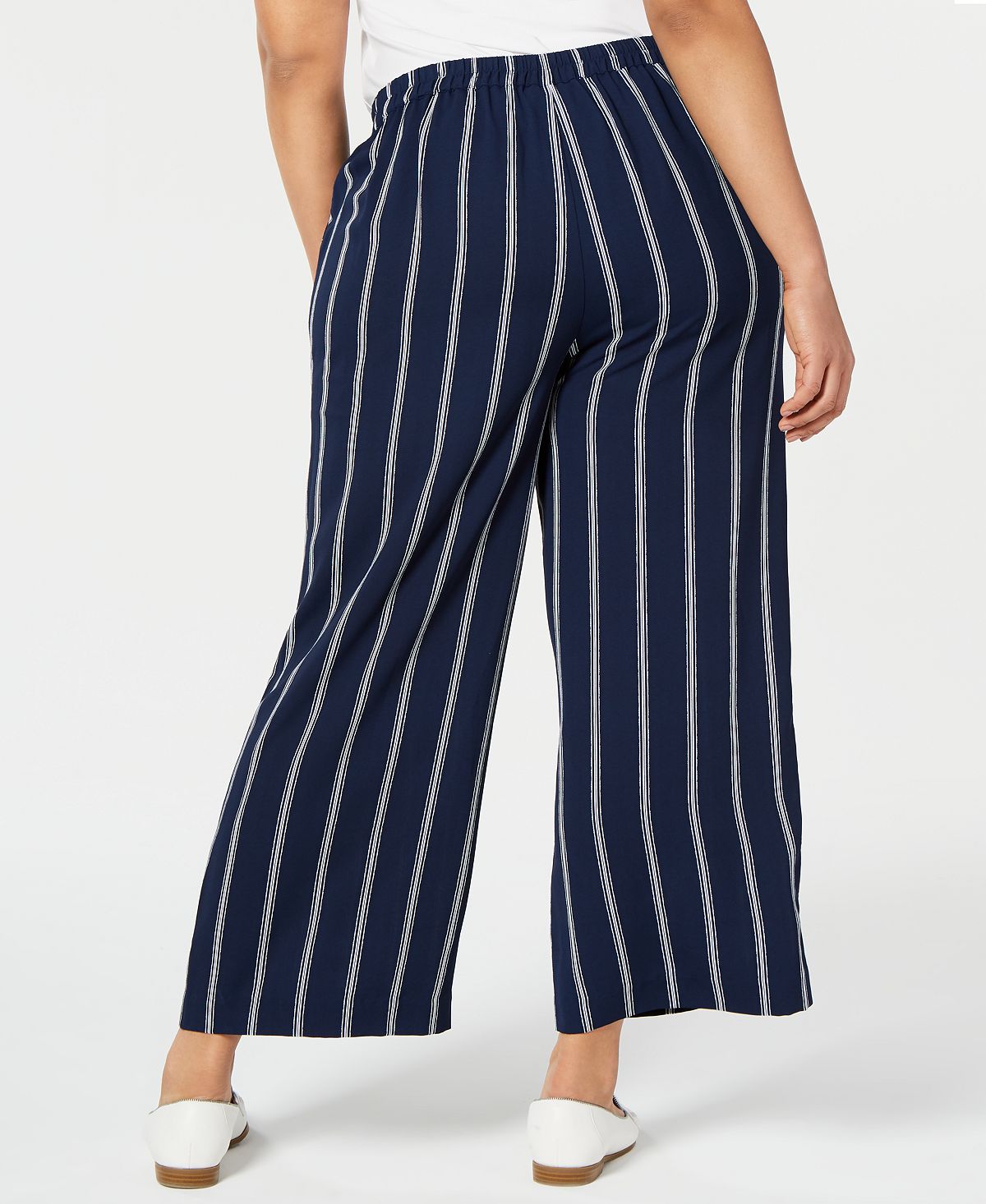 Charter Club Women's Plus Striped Pull on Pants Blue Size 0X