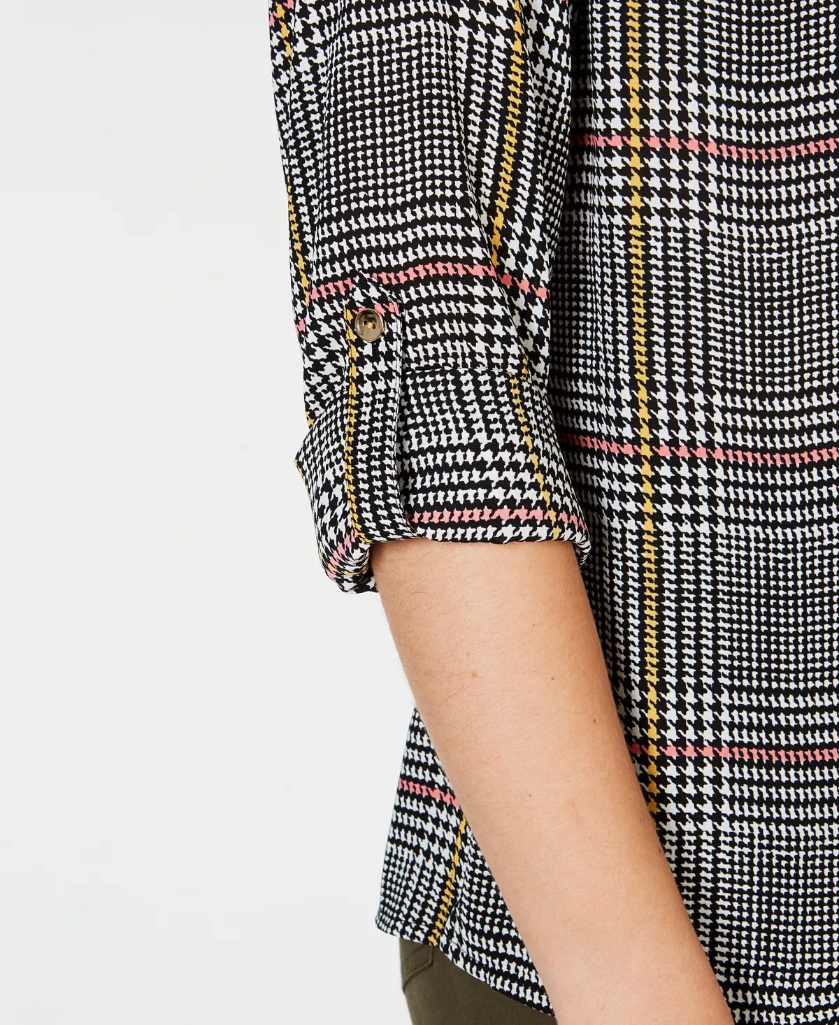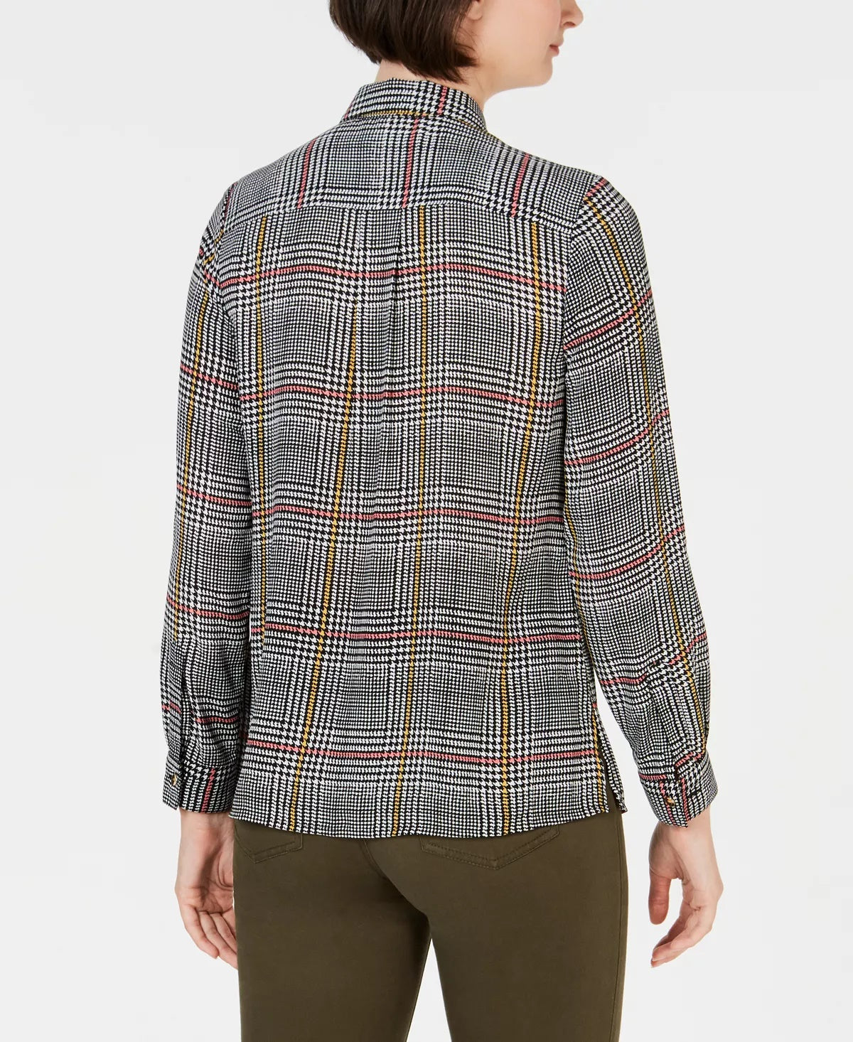Charter Club Women's Printed Button-Front Roll-Tab-Sleeve Top Black Size Petite Medium