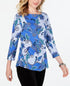 Charter Club Women's Printed Cotton 3/4 Sleeve Top Blue Size L
