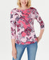 Charter Club Women's Printed Cotton 3/4 Sleeve Top Pink Size X-Small