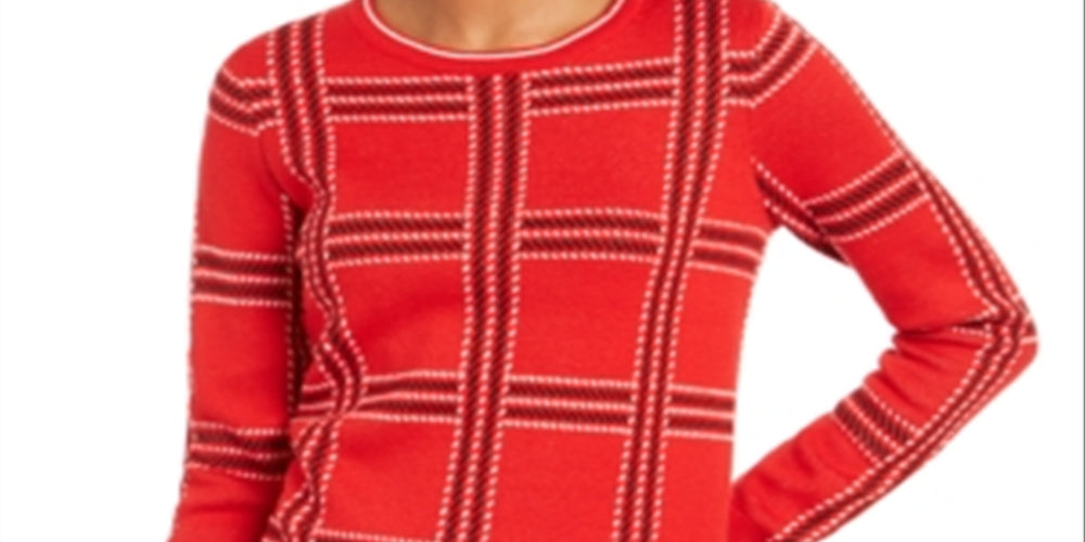 Charter Club Women's Printed Crewneck Sweater Red Size XX-Large