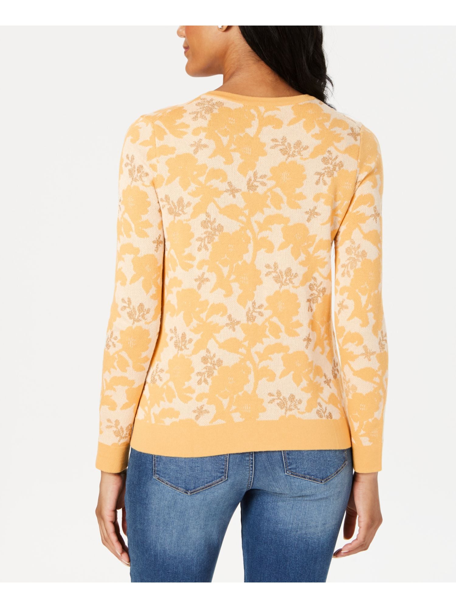 Charter Club Women's Printed Long Sleeve Crew Neck Button up Party Top Yellow Size Small