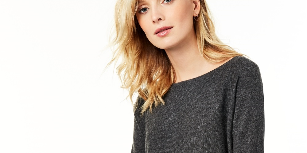 Charter Club Women's Pure Cashmere Long Sleeve Shirttail Sweater Gray Size Medium