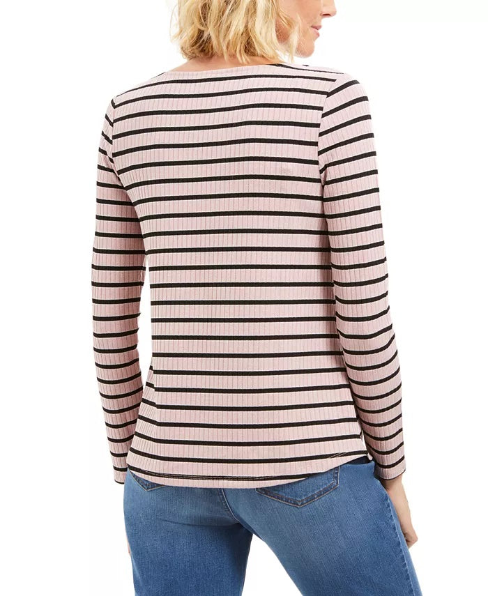 Charter Club Women's Ribbed Striped Top Pink Size Large