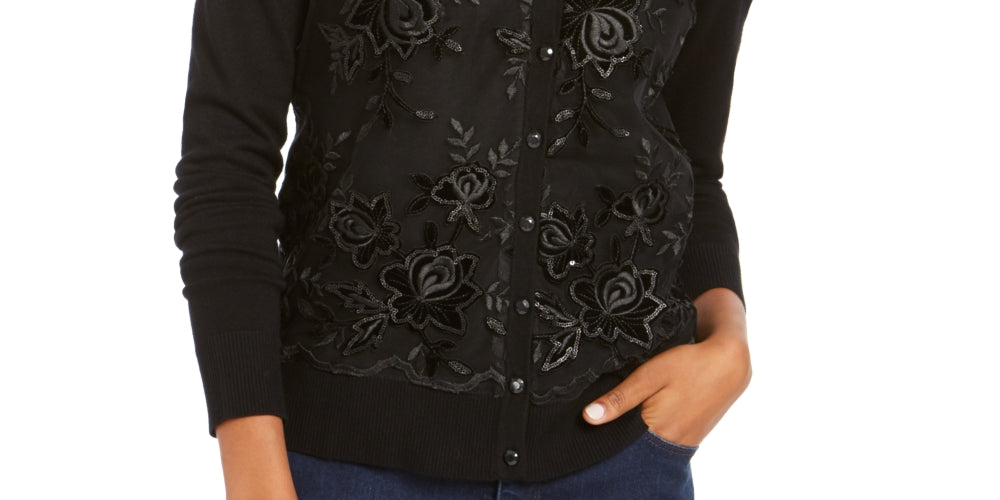 Charter Club Women's Sequined Button Sweater Black Size Small