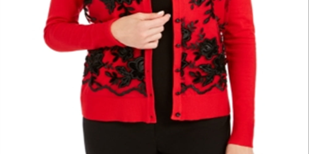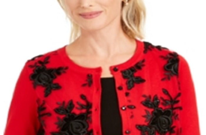 Charter Club Women's Sequined Button Sweater Red Size Small