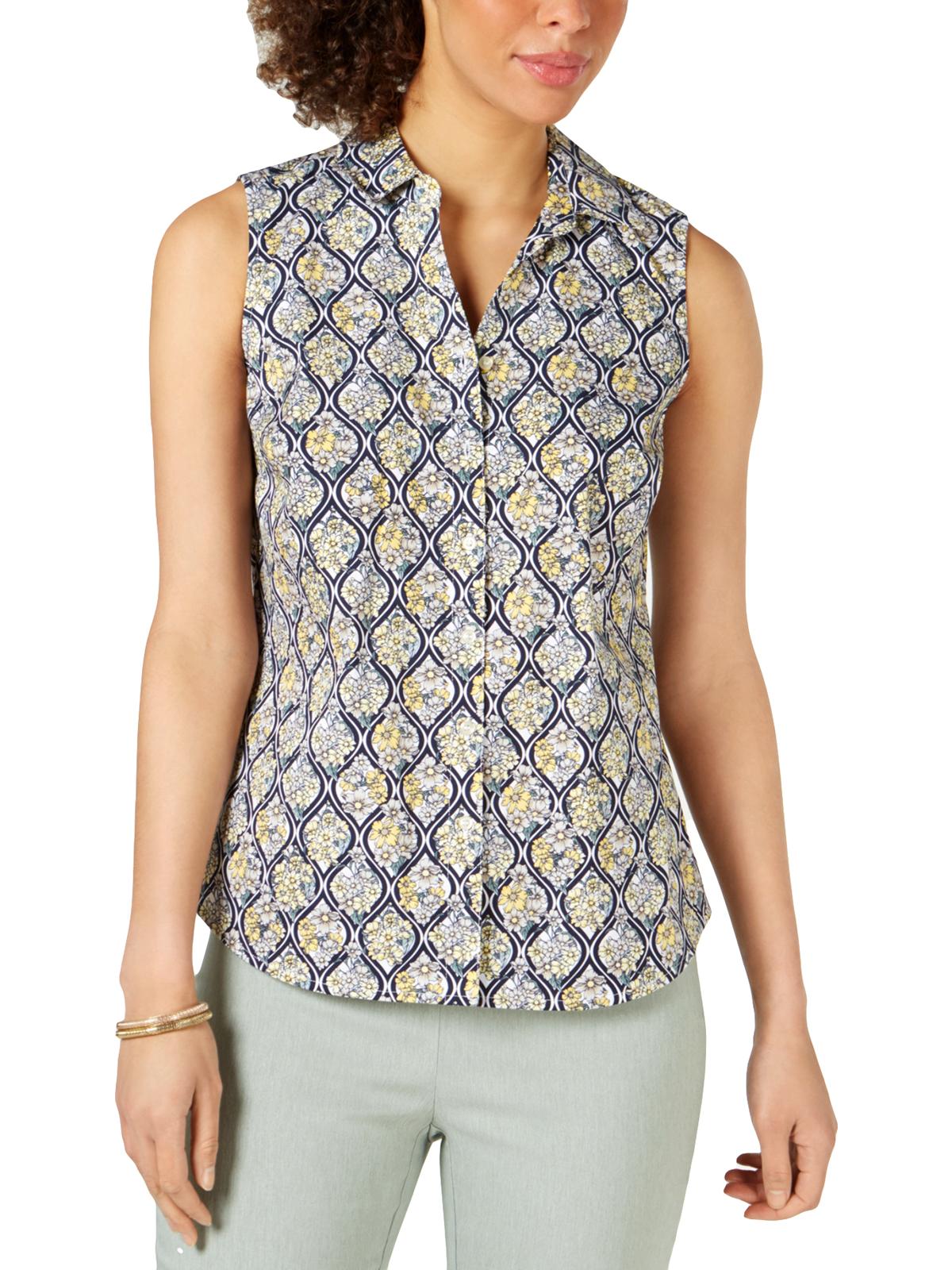 Charter Club Women's Sleeveless Button Up Shirt Yellow Size 14 Petite