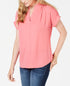 Charter Club Women's Split Neck Short Sleeve Top Pink Size Petite X-Large