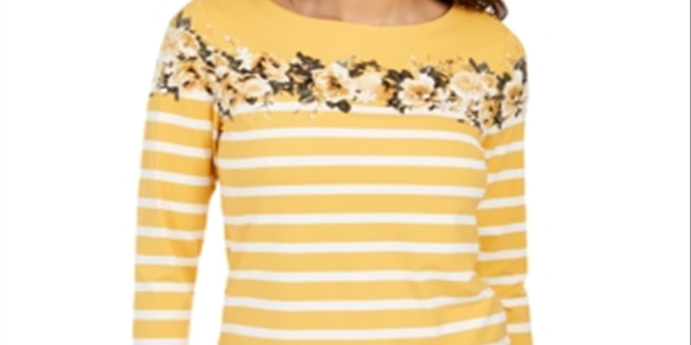 Charter Club Women's Striped and Floral-Print Top Yellow Size 2XL