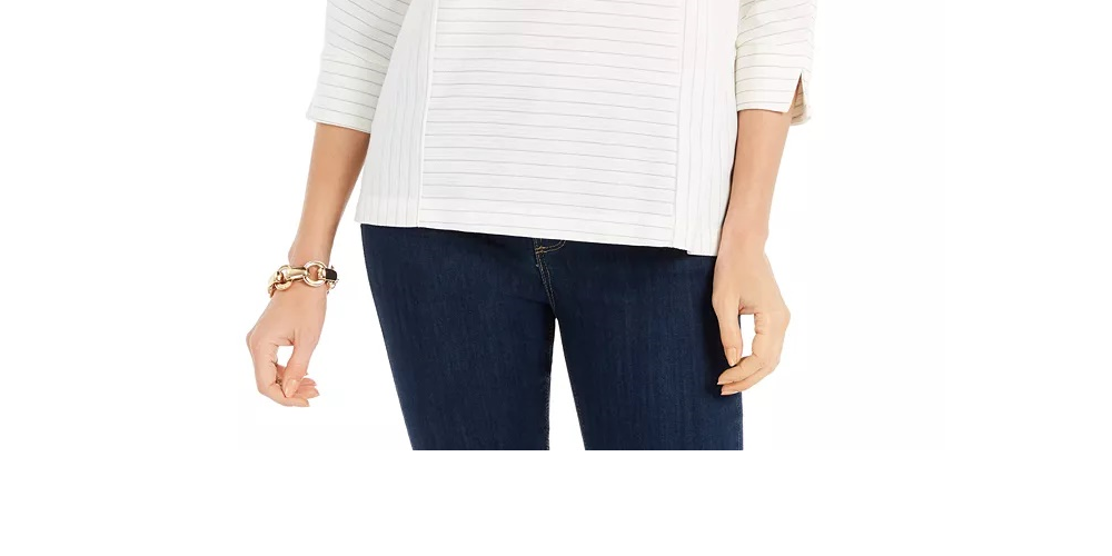 Charter Club Women's Striped Back-Button Top White Size X-Large