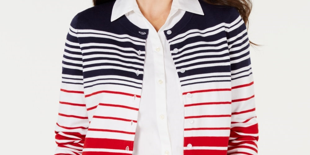 Relaxed fit; hits at hip; approx. 22 long|Due to generous sizing; we suggest sizing down for the perfect fit|Crewneck; front button closures|Cotton/rayon