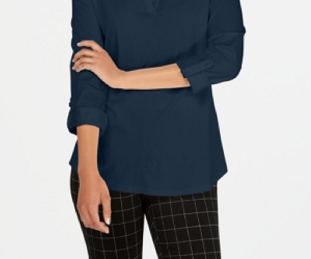 Clever roll-tab sleeves lend endless versatility to this lightweight Supima cotton top from Charter Club| styled with a split neckline