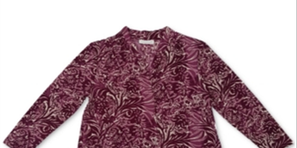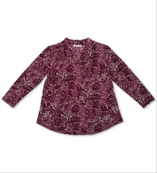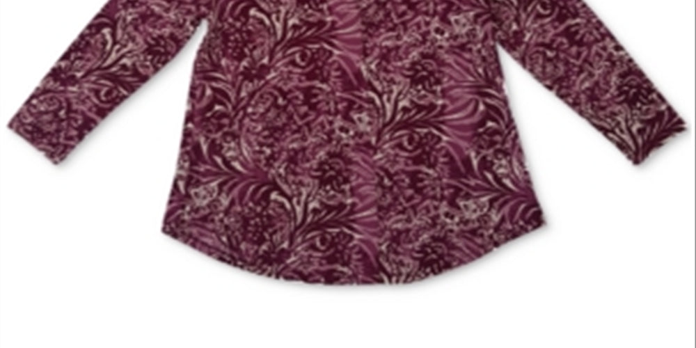 Charter Club Women's V Neck Printed Three Quarter Sleeve Top Red Size Large