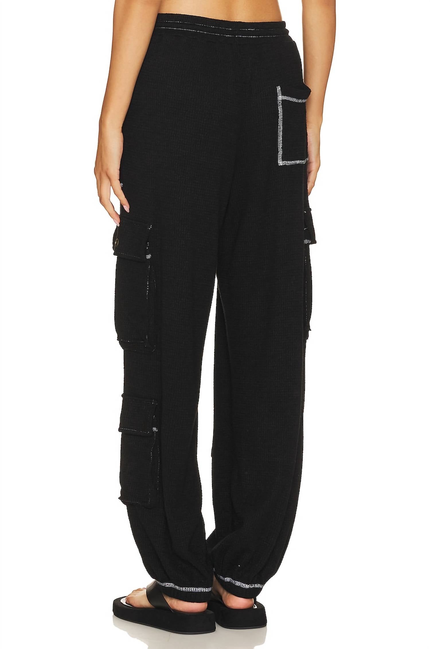 No gym necessary for these cool-girl joggers. Stylish addition to your track pants and joggers collection. Boast a comfortable pull-on design with a high-rise elastic waist and a drawstring closure. Made from a lightweight gauze thermal fabric, blends 50% Rayon, 28% Polyester, and 22% Nylon. Perfect for fall travel and streetwear occasions. Featuring functional cargo pockets and deep front pockets, versatile and practical. Machine wash recommended. For reference, the model is 5'9" and wears a size small.