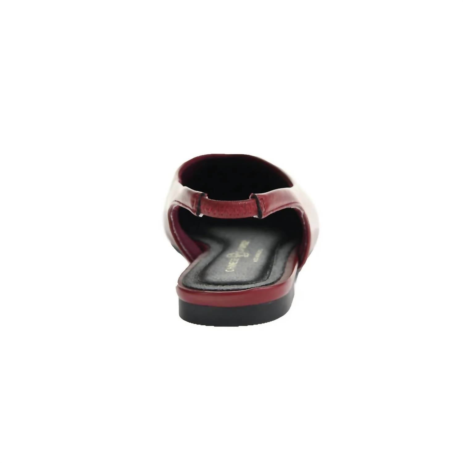 A preppy yet feminine take on the classic loafer. Step into style with the Women's Hadiya Smooth Slingback Flat by Chinese Laundry, perfect for any occasion. Crafted with manmade materials, these flats feature a sophisticated pointed toe and an elasticized slingback strap for ultimate comfort. Designed with a chic low block heel, they are a versatile choice for summer outings. Available in a stunning wine color, these flats are a must-have for both subtle entrances and bold statements.